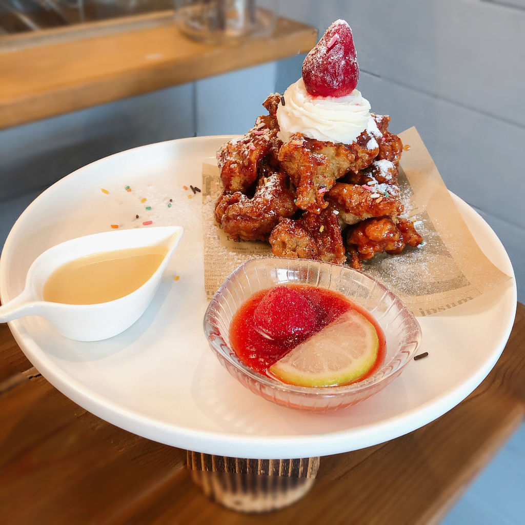 甜點炸雞超級超級驚艷!不論是單吃炸雞還是搭配全部醬料都能非常美味! 色香味俱全呀~~