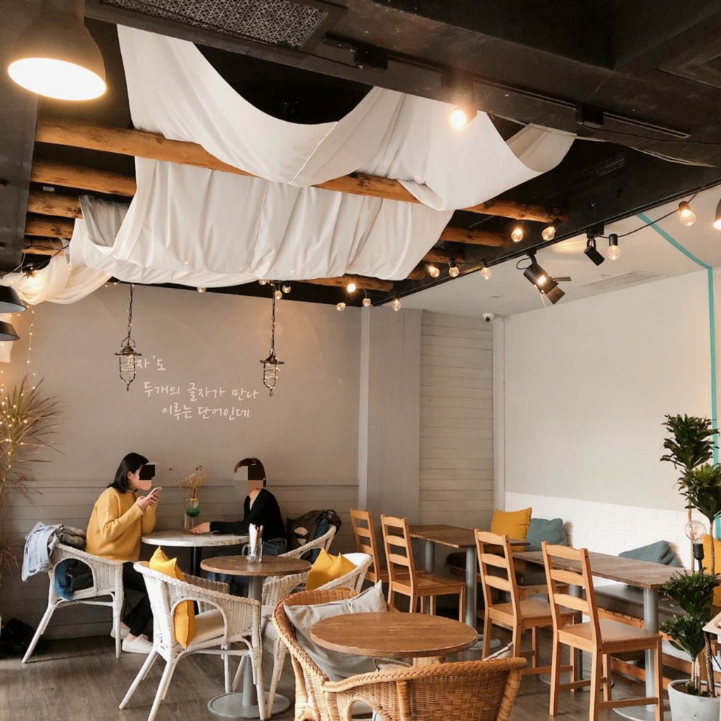 整間店的裝潢偏韓系風,從店門口就可以隱約感覺到這整個清新的風格。進來後心裡讚嘆了一下,根本就像飛到韓國的餐廳一樣